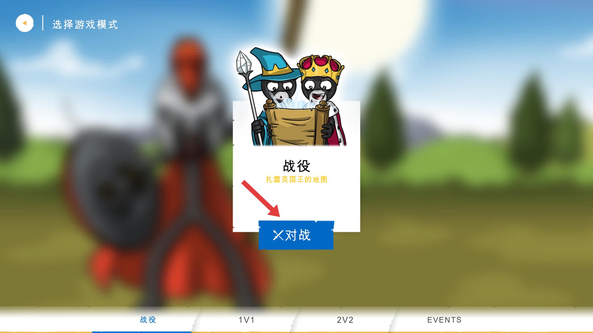 1、游戲開始,進入選擇游戲模式界面,有戰役等模式,點擊對戰按鈕,即可進入對戰相關的游戲環節。
