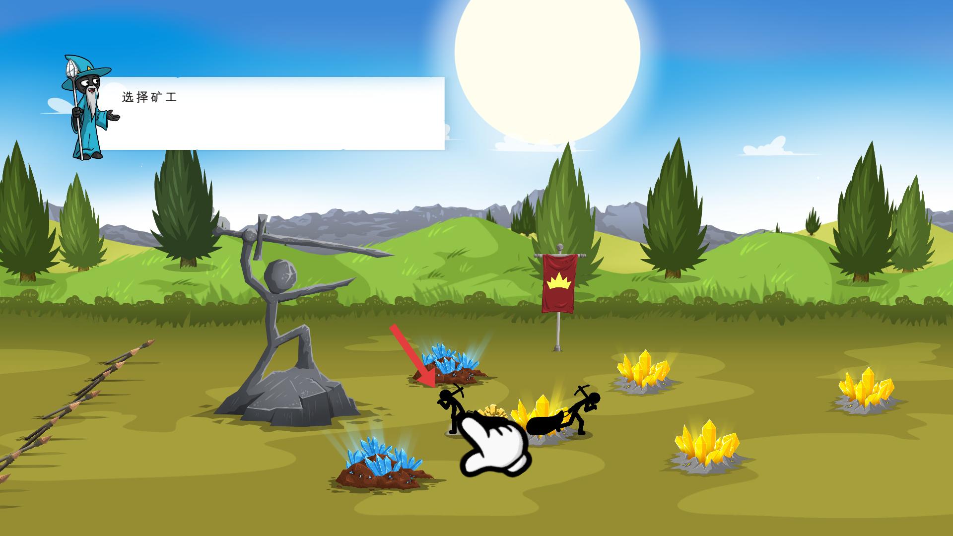 2、進入場景后,需選擇礦工,畫面中有礦工在礦石旁,點擊相應礦工,可讓其進行挖礦等操作,為后續資源獲取做準備。