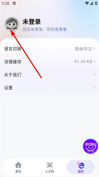 2、進入我的頁面后,能看到未登錄提示及語言切換清理緩存等功能,點擊去登錄選項,可進入賬號登錄頁面。