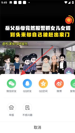 3、若想分享視頻點擊分享按鈕,在彈出的分享選項中,選擇微信好友、QQ好友等方式,將視頻分享給他人。