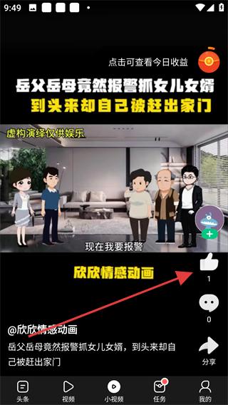 2、在視頻播放頁面若覺得視頻有趣,可點擊點贊按鈕進行點贊,也可點擊評論按鈕,發表自己的看法。