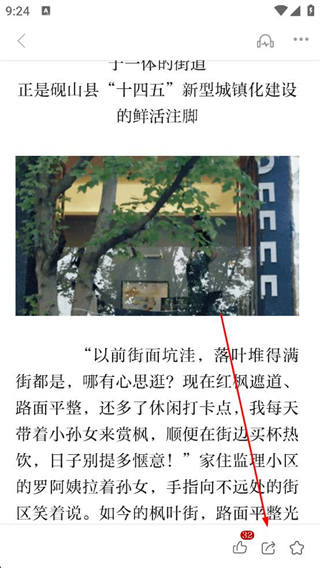 3、進入資訊詳情頁后閱讀文章內容,了解硯山縣新型城鎮化建設的相關情況,還能點擊點贊,點擊下方的分享按鈕。