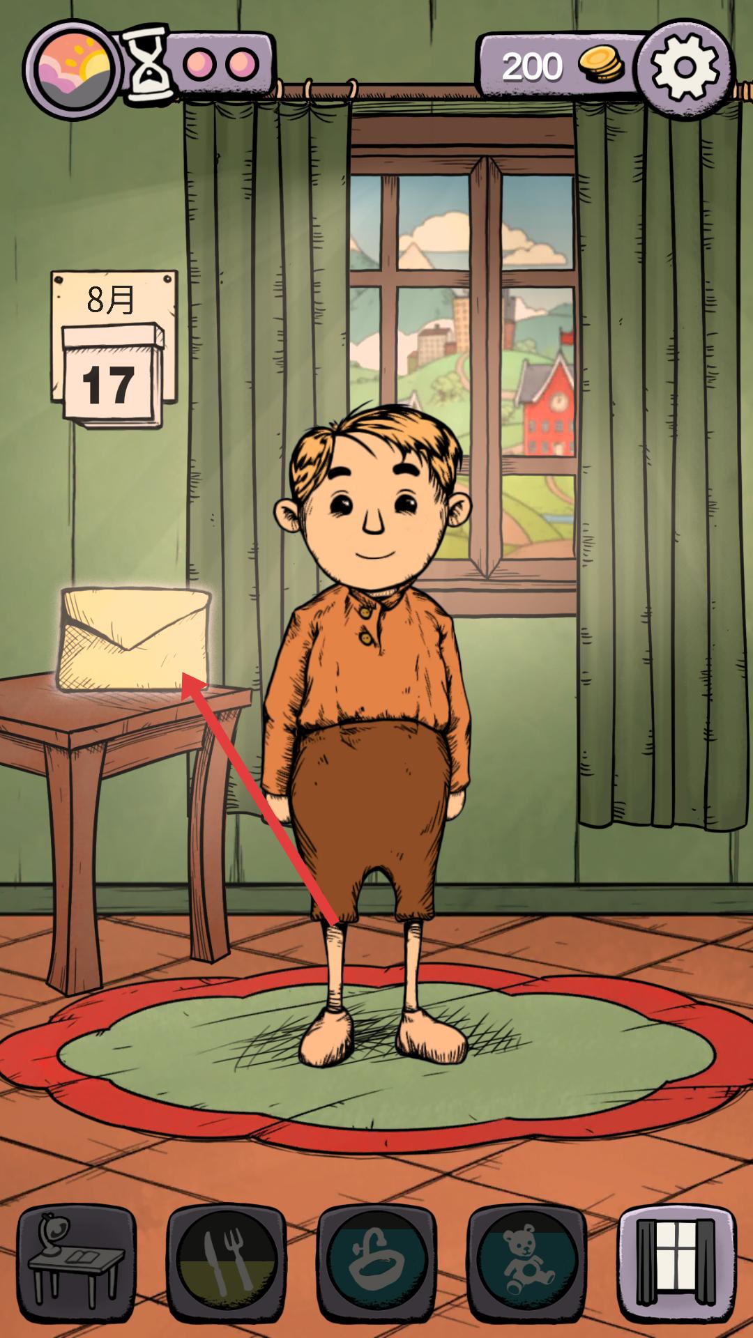 2、進入場景后,畫面中有克勞斯和桌上的信封,點擊信封,可查看其中內容,推進游戲劇情發展。