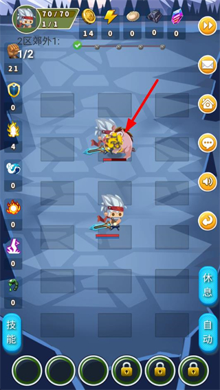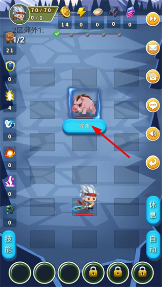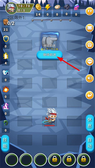 1、冒險時點擊繼續前進可進入下一個關卡,逐步推進冒險進程,不斷探索新的區域和內容。