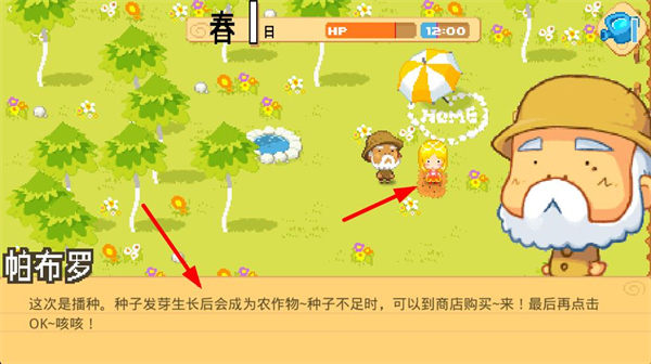 3、完成鋤地后進行播種操作,將種子種在農地里,種子會發芽生長為農作物,種子不足時可到商店購買,操作后點擊OK確認。