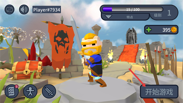 1、點擊開始游戲進入游戲,你將操控角色開啟冒險,角色初始等級為1,還有初始金幣可用于后續發展,做好準備迎接挑戰吧。
