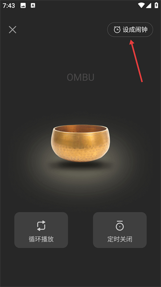 4、選擇能量鬧鐘里的缽盂音效后,可點擊設成鬧鐘將其設為提醒,也能選循環播放持續播放,還可以設置定時關閉自動停止音效。