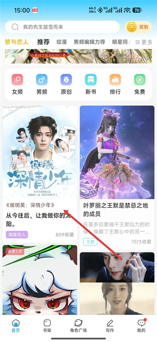 1、打開話本小說APP,進入首頁可看到夢與戀人、推薦等分類,還有各類小說推薦,選擇感興趣的小說。