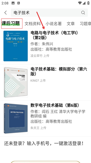 2、電子技術板塊聚焦學科資源,展示相關教材的課后習題,包含不同版本專業書籍,需登錄后可查看對應的詳細學習內容。
