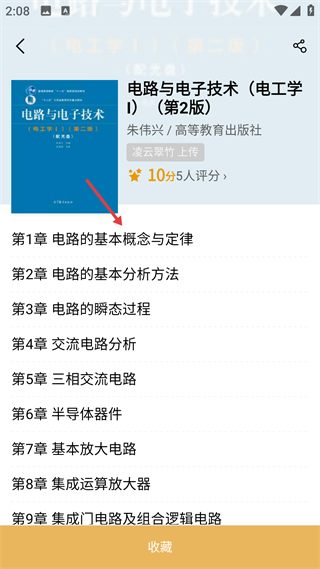 3、教材章節頁呈現教材的章節結構,涵蓋核心知識章節,標注書籍作者等信息,支持收藏操作,便于后續查看學習。