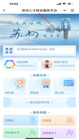 4、蘇州人才綜合服務平臺,提供求職招聘等人才服務,含補貼申領等功能,設縣區政策專區助力人才在蘇發展。