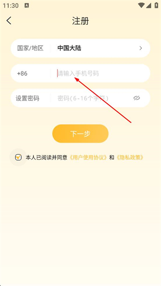 1、點擊登錄注冊選項,進入注冊頁面,選擇中國大陸地區,輸入手機號碼并設置密碼登錄。