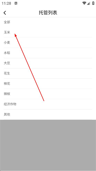 4、進入托管列表頁面可選擇玉米小麥水稻等不同作物分類,查看對應作物的托管相關信息,根據種植的作物類型,篩選適配的托管服務內容。