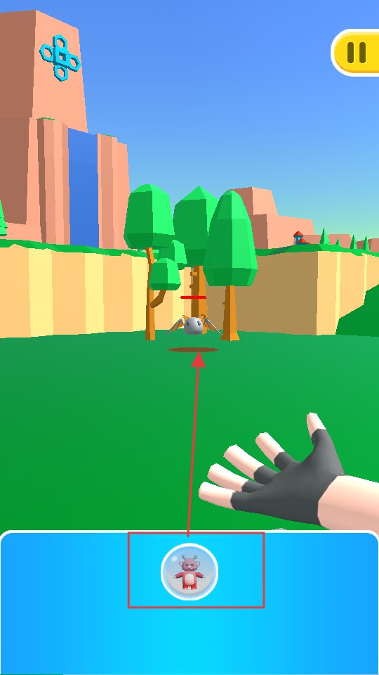 2、點擊下方帶有怪物的寶珠,瞄準場景里樹木附近的目標,釋放寶珠內的怪物,對目標發起攻擊,推動游戲進行。