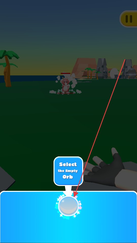 1、進入游戲看到下方有選擇空寶珠的提示,點擊對應的空寶珠,準備在場景中借助寶珠應對遠處的目標。