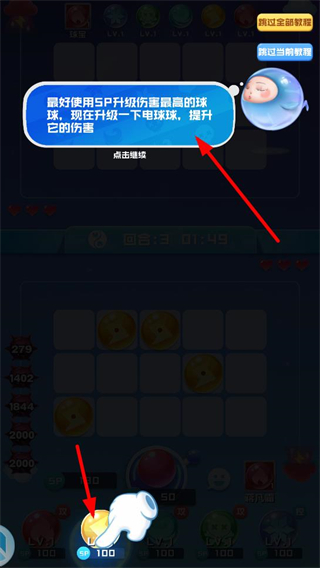 2、使用SP升級傷害最高的球球,如電球球,提升其傷害能力,優化對戰陣容,增強整體火力輸出。