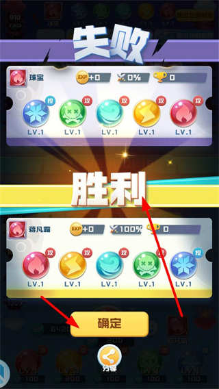 3、對戰勝利后點擊確定按鈕,領取經驗和資源獎勵,提升球球等級和戰力,備戰后續對戰;若失敗則總結經驗,調整陣容再戰。