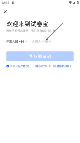 1、打開試卷寶應用,彈出協議與權限說明窗口,仔細閱讀試卷寶用戶協議、試卷寶隱私政策和兒童隱私政策內容,確認無誤后點擊同意并繼續按鈕,進入應用首頁。