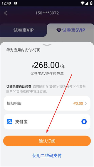 4、在支付頁面選擇支付寶等支付方式,點擊確認訂閱按鈕,完成會員支付,享受會員權益。