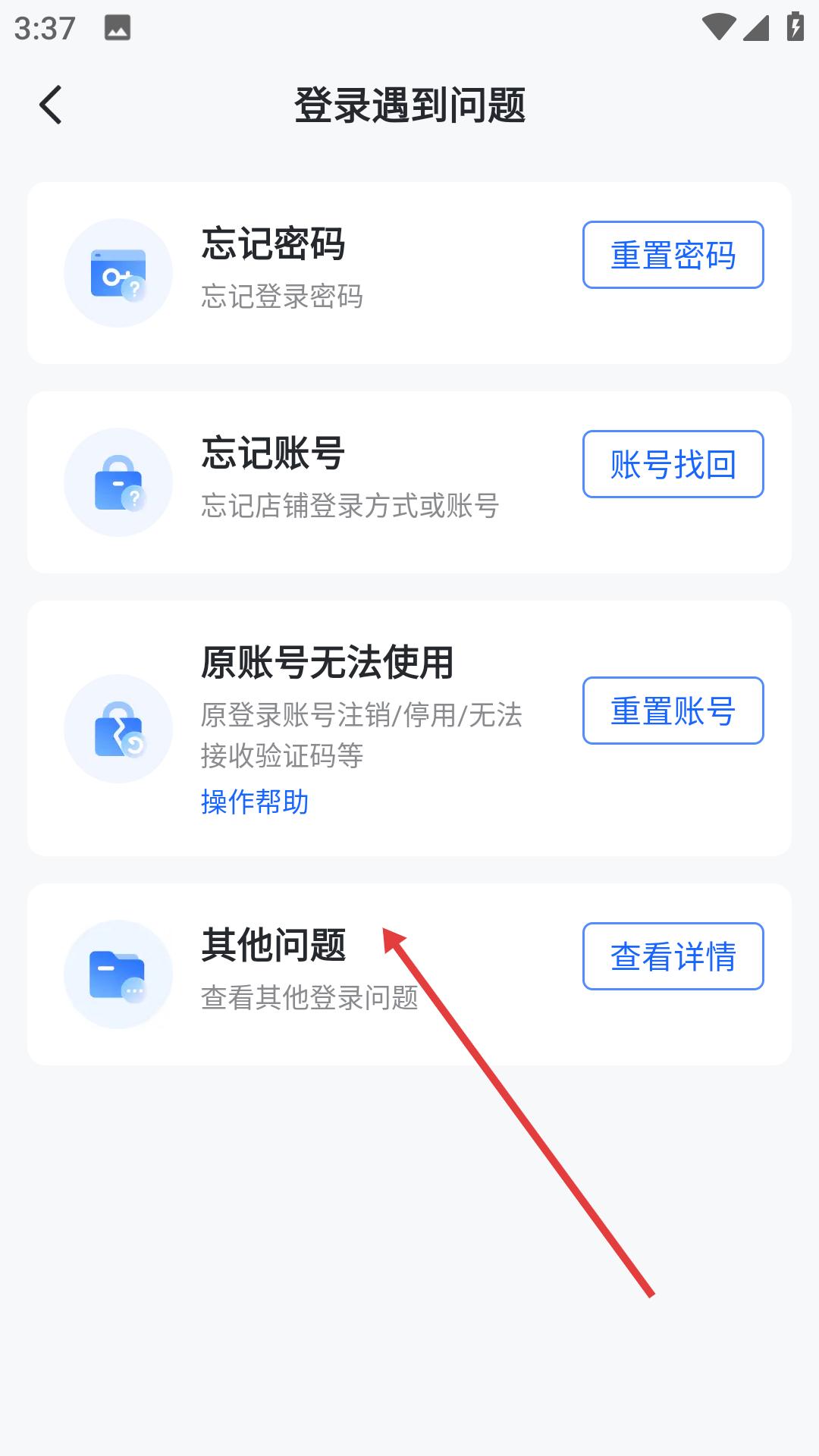2、抖店登錄問題頁列忘記密碼、賬號等情況及對應重置、找回等解決入口,其他問題可查看更多登錄難題。