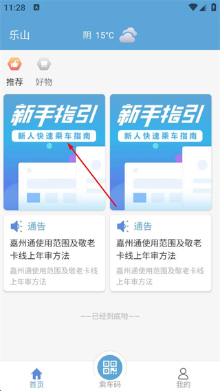 3、在推薦頁面可查看新手指引和通告信息,選擇新人快速乘車指南可進入新手指引頁面。