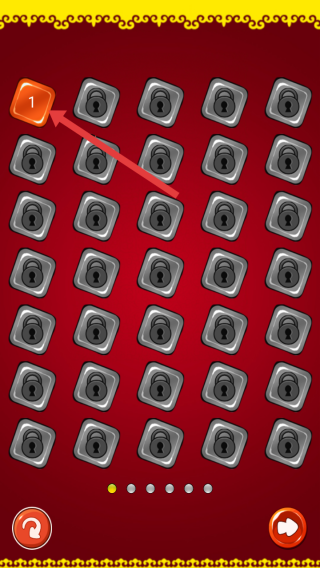 2、進入燈謎關卡選擇界面,能看到標有序號的關卡,點擊對應序號如1的關卡,進入具體猜謎環節。
