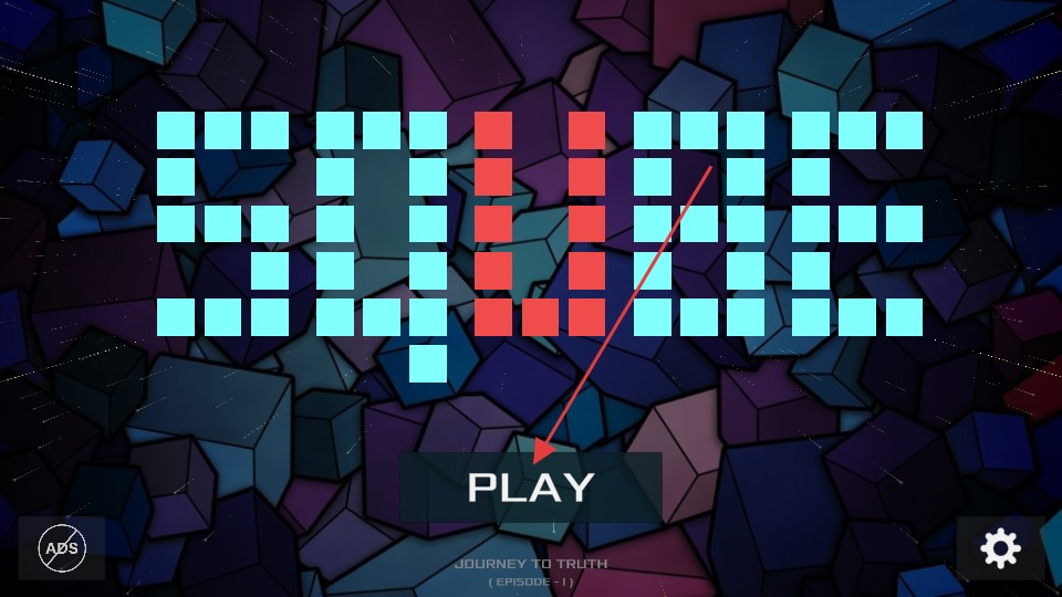 1、進入游戲主界面能看到帶有彩色方塊圖案和PLAY按鈕的界面,點擊PLAY按鈕,進入游戲的關卡場景。
