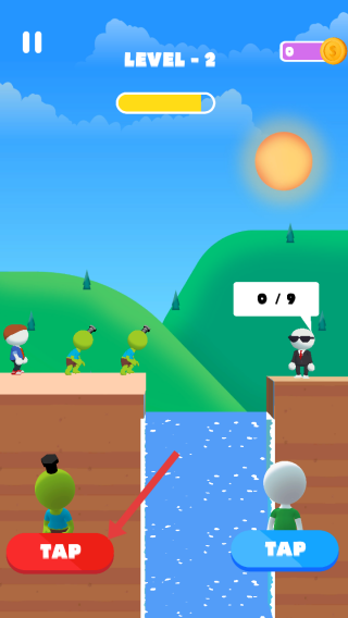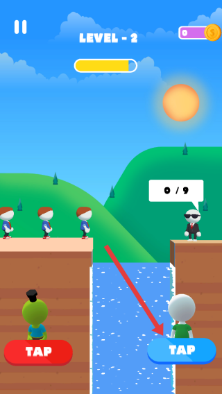 2、到了LEVEL2,界面有好人壞人的提示,還有藍色的TAP按鈕,點擊藍色按鈕讓好人過來。