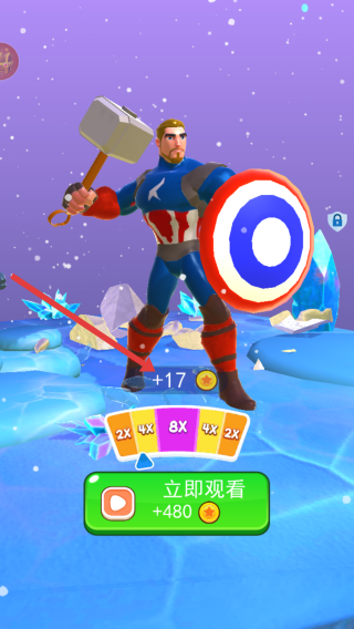 3、成功救援后,會出現英雄角色,同時獲得金幣獎勵,還可選擇觀看視頻來獲取更多金幣。