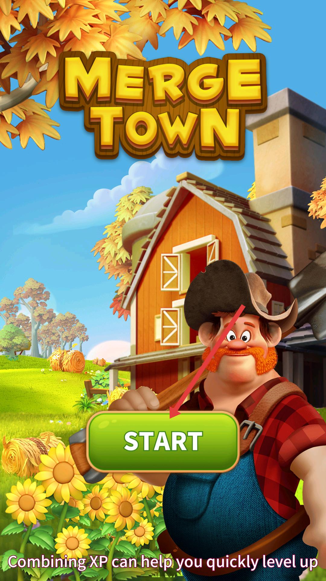 1、點擊START按鈕即可開啟游戲,進入充滿合并與建設樂趣的小鎮世界,開始你的冒險之旅。