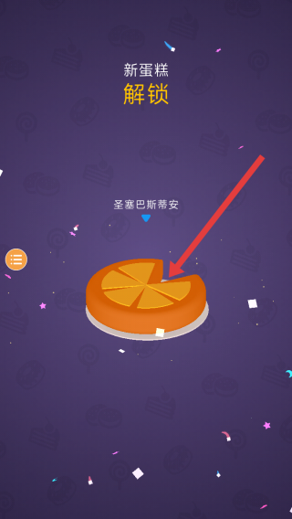 3、成功解鎖新蛋糕圣塞巴斯蒂安,界面有彩帶和彩紙裝飾,新蛋糕看起來很誘人,完成解鎖是階段性的小成就。
