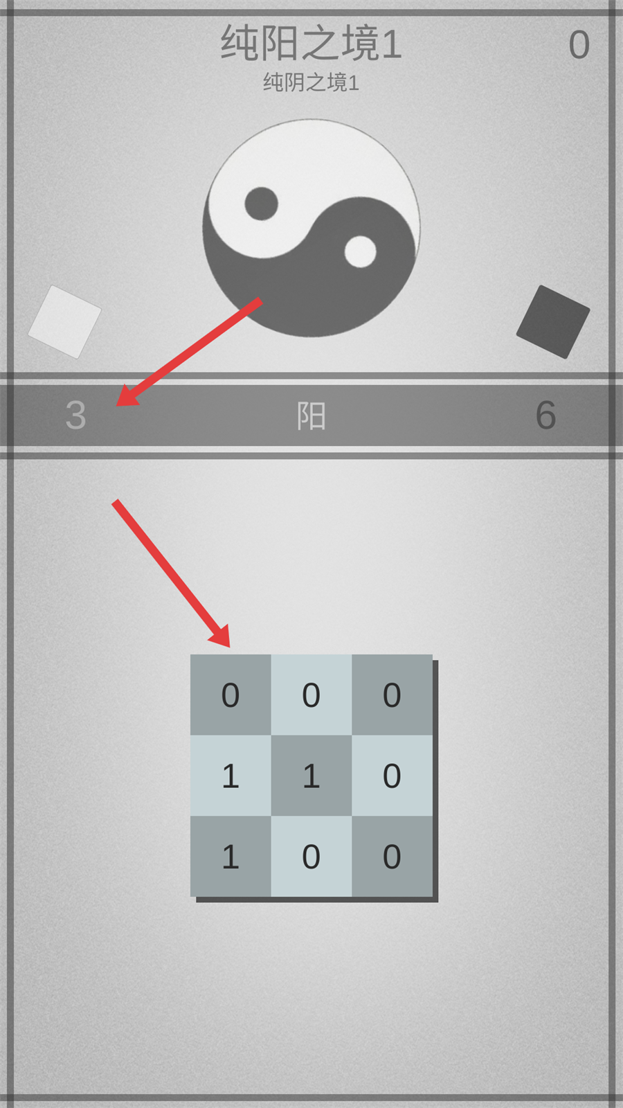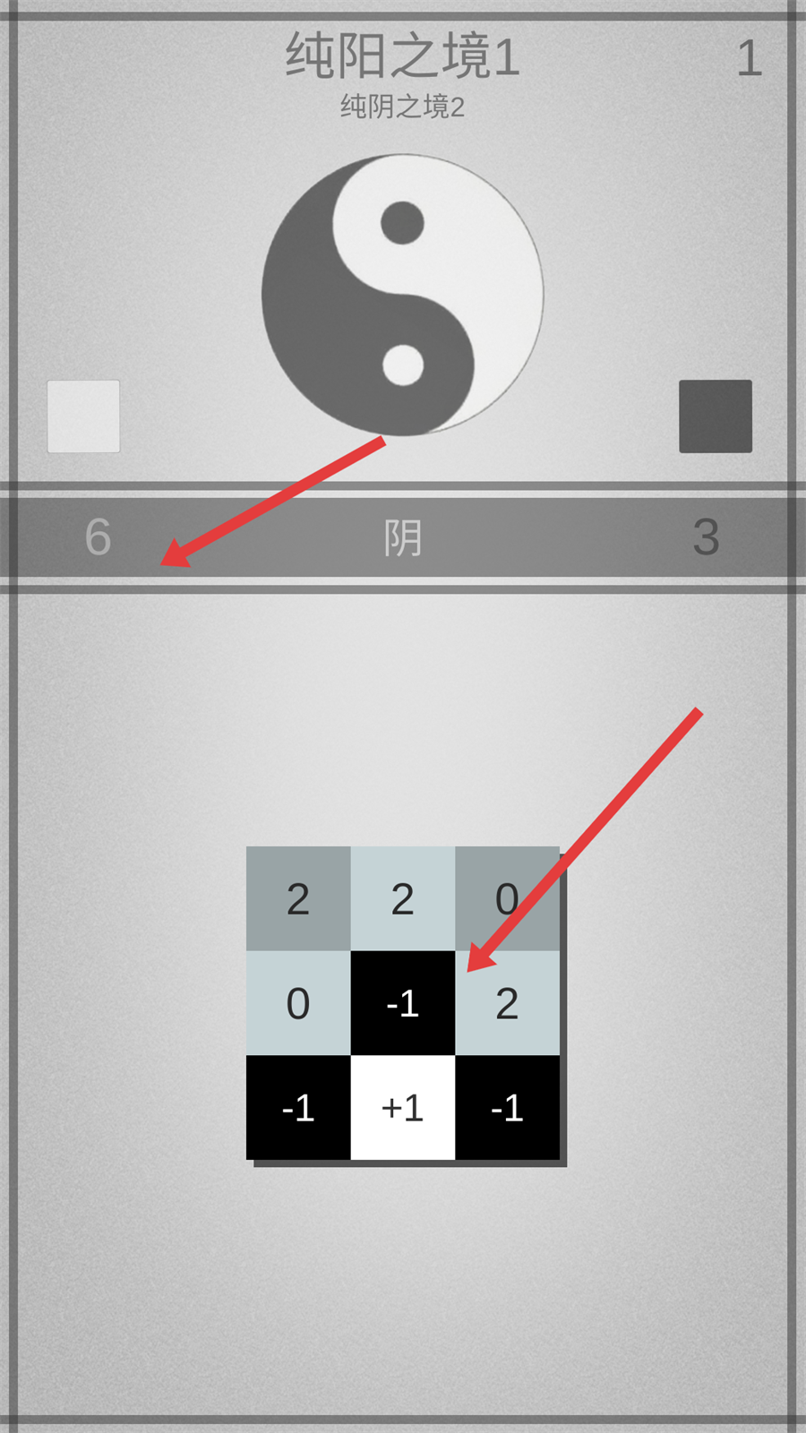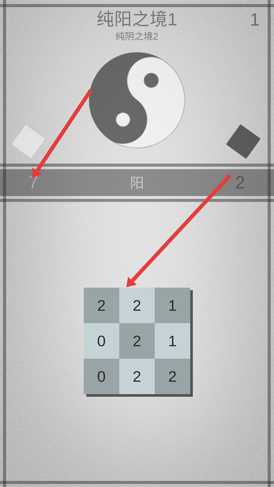 1、首先觀察界面中間的陰陽符號,以及下方帶有數字的方格,明確當前所處的純陽之境或純陰之境,了解游戲的場景設定。