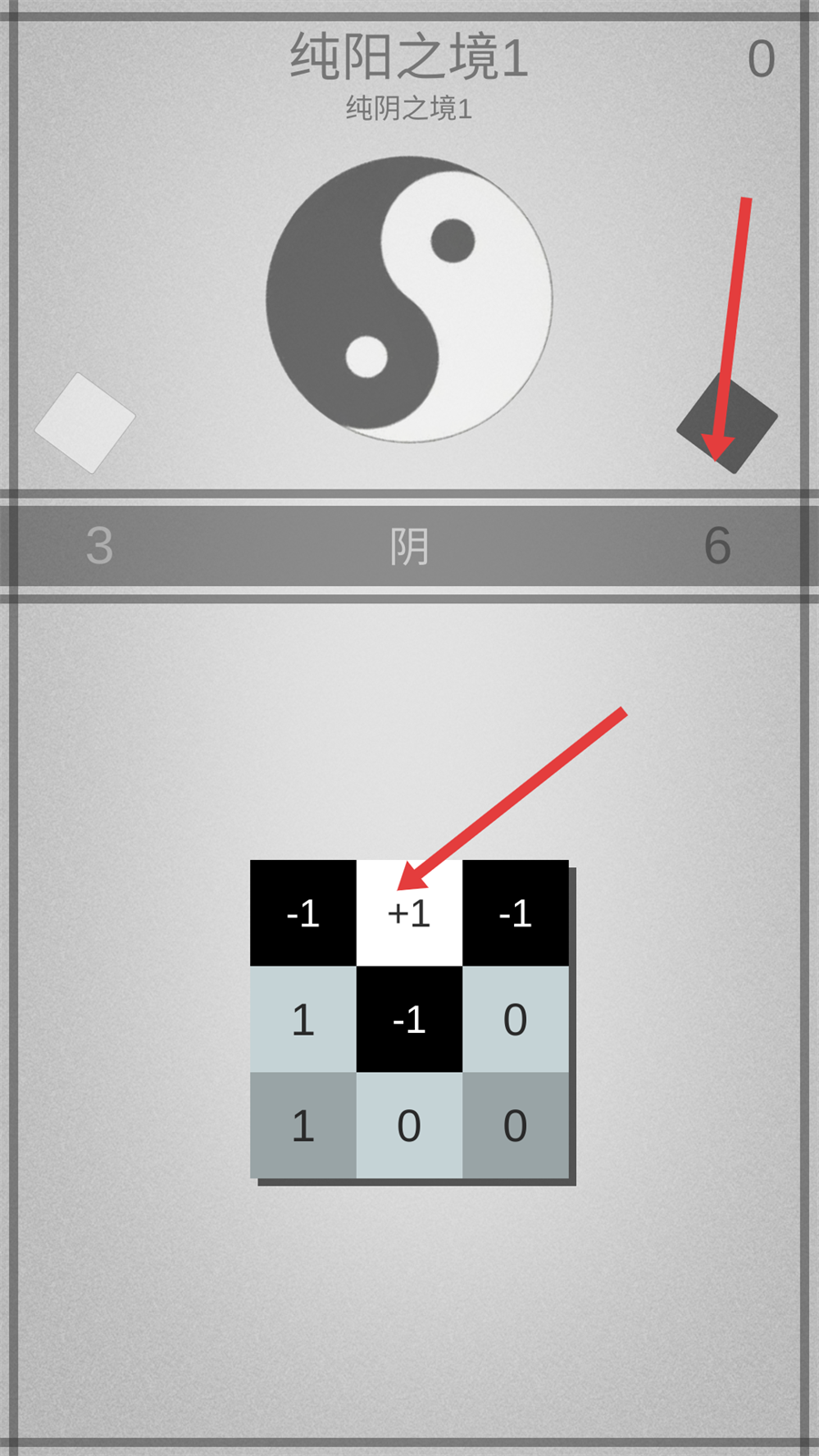 2、接著根據陰陽符號的變化,點擊對應顏色的方塊,比如符號偏向陰時,點擊黑色方塊,觸發方格內數字的變化,推進游戲進程。