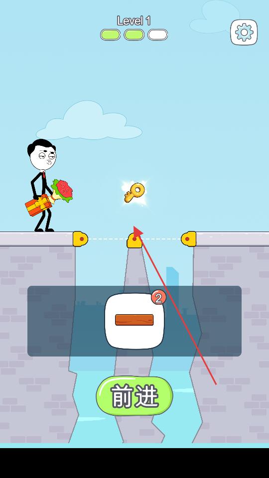 4、再次放置木板來完善橋梁,使火柴人可以到達更遠處,過程中會遇到鑰匙等道具,收集這些道具能助力關卡推進,完成當前階段的冒險。