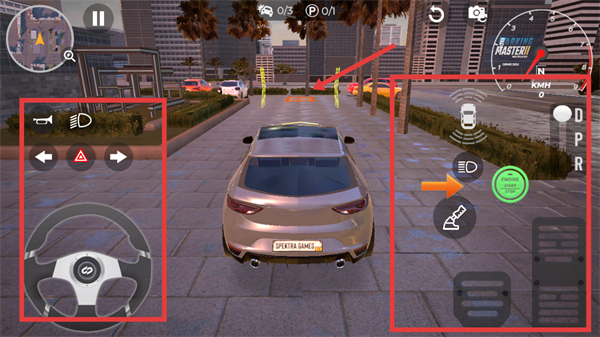 2、開始停車后利用左側方向盤控制方向,右側踏板控制車速,還可借助燈光等功能輔助,朝著目標車位行進。