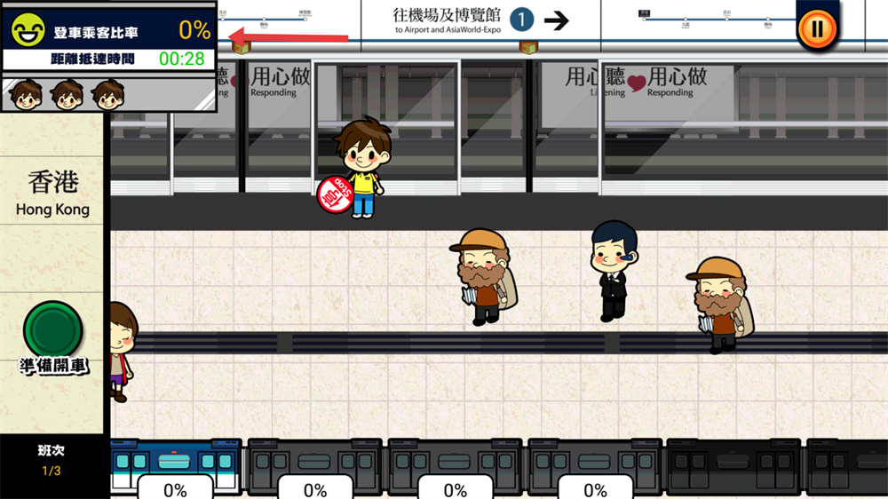 3、進入運營界面后在車站等待乘客到來,當有乘客出現時,引導他們有序登車,同時留意登車乘客比率等數據。