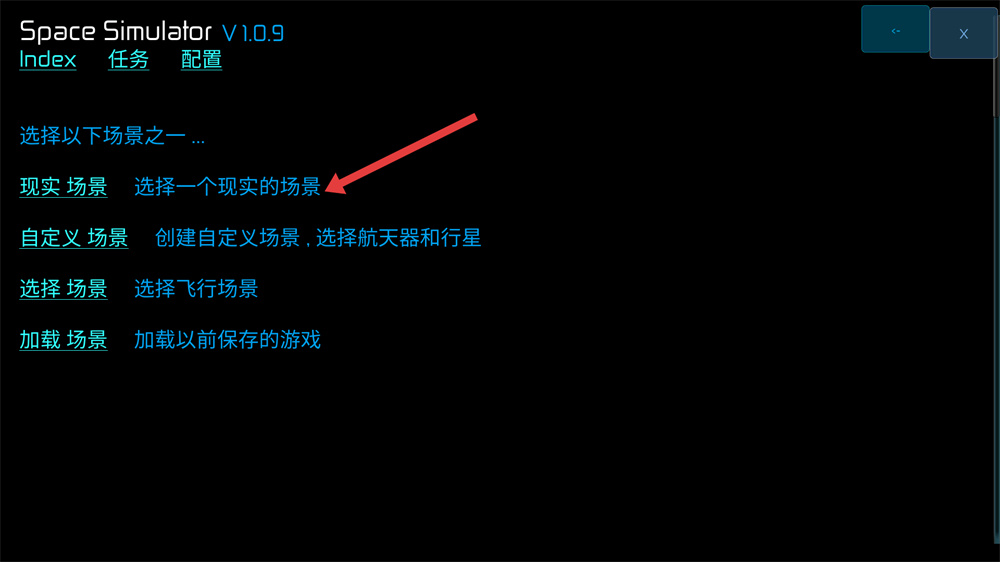 2、在場景選擇界面,選擇現實場景,進入具體的現實太空場景,此時能看到航天器等太空元素,開始體驗太空模擬。