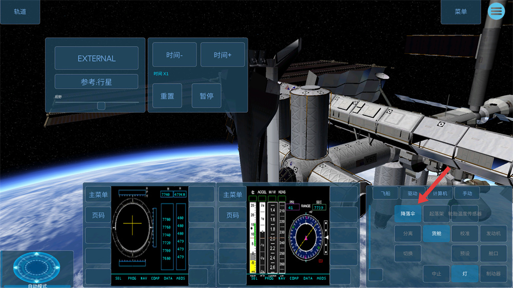 4、根據任務或探索需求,操作航天器上的設備,如打開降落傘等,模擬航天器在太空或返回過程中的各種操作,完成相應的太空任務。