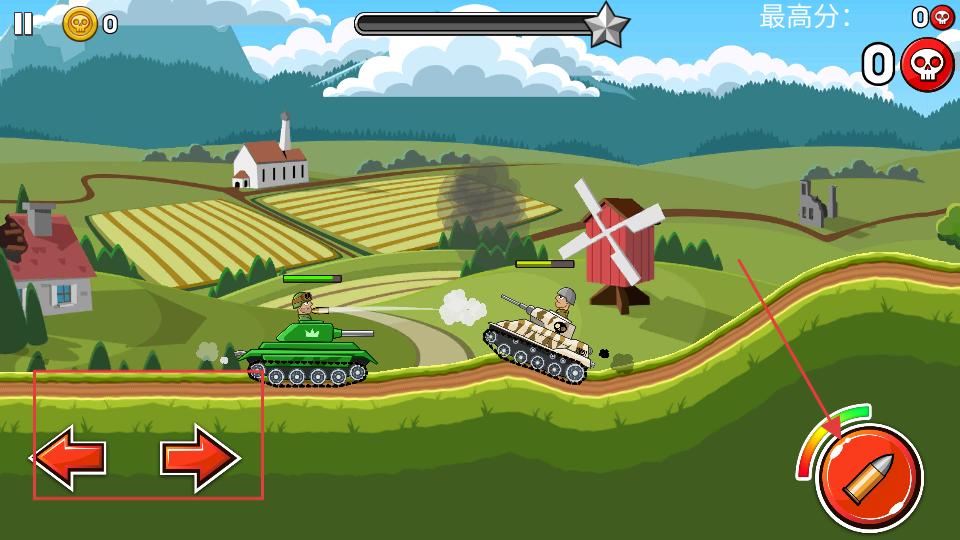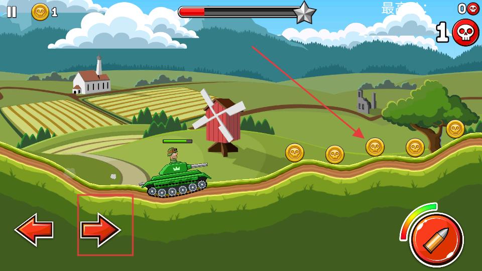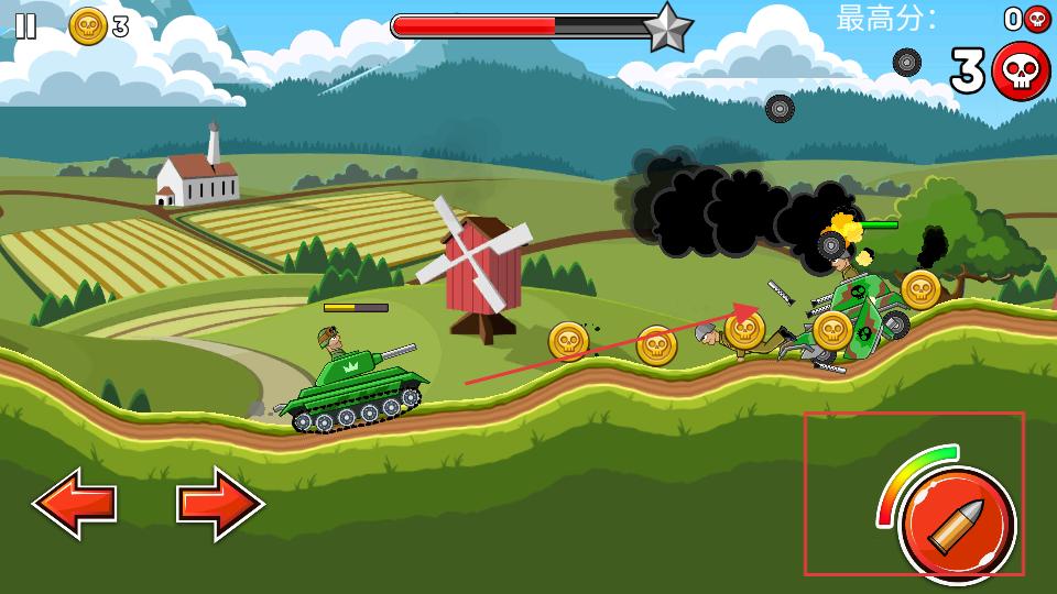 3、遭遇敵方坦克時,點擊右側彈藥按鈕,向敵方坦克發射炮彈,擊中后敵方坦克會爆炸,接著收集爆炸掉落的金幣。