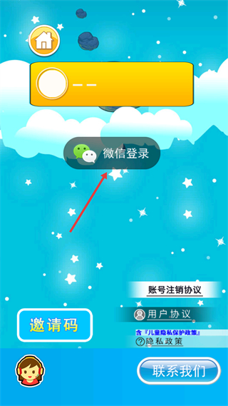 1、微信登錄應用,設有邀請碼入口,還能查看賬號注銷協議和用戶協議,底部有聯系我們的入口。