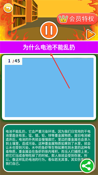 4、此頁呈現為什么電池不能亂扔”的科普內容,有圖文說明和語音控制按鈕,可了解電池亂扔的危害。