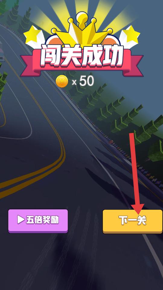 4、成功闖關后,可獲得50金幣獎勵,點擊下一關,繼續挑戰后續關卡,也可選擇五倍獎勵獲取更多金幣。