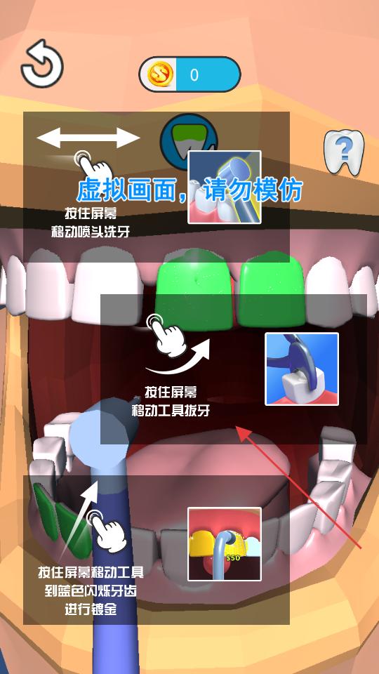 1、精準互動體驗:采用多點觸控技術模擬器械操作手感,不同牙科工具對應獨特震動反饋,鉆頭打磨與鉗子拔牙均有差異化操作表現。