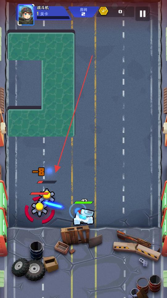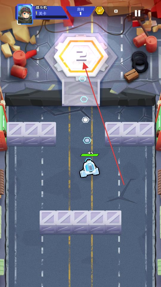 2、操控機甲在道路上移動,朝著目標區域前進,注意避開周圍的障礙物,順利抵達該區域以推進關卡。