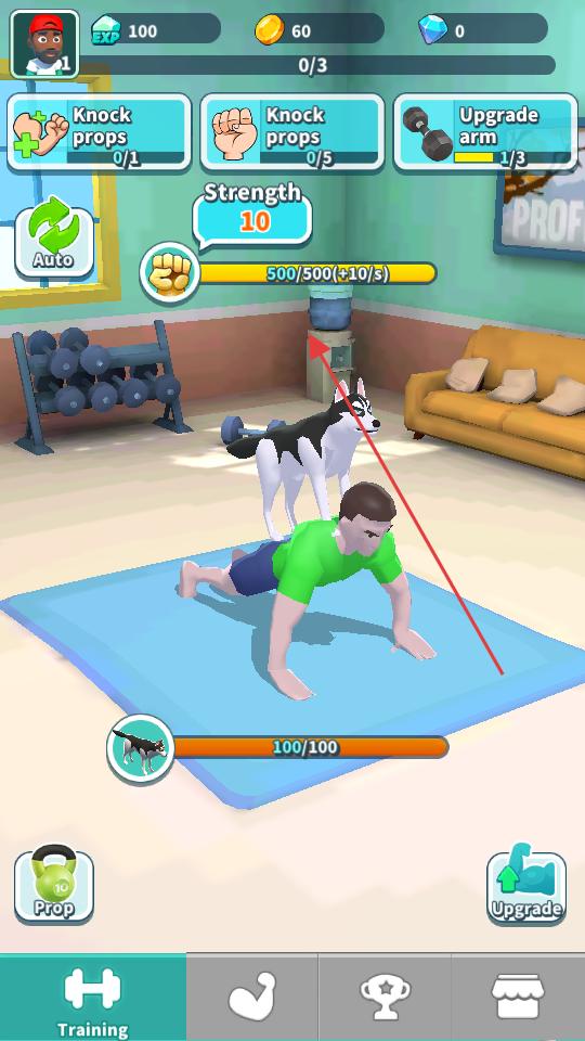 2、訓練過程中寵物會弄倒周圍的道具,此時能獲取經驗和金幣獎勵,要注意收集這些獎勵,為后續升級做準備,同時力量值會有消耗,需留意其變化情況。