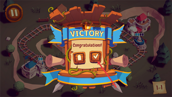 4、當屏幕顯示VICTORY時,表示本關卡已成功通過,點擊帶對勾的按鈕,即可進入下一關繼續挑戰。