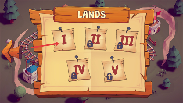 2、接著進入到LANDS地圖選擇界面,找到并點擊標有I且未鎖定的區域,即可開始第一關的挑戰。