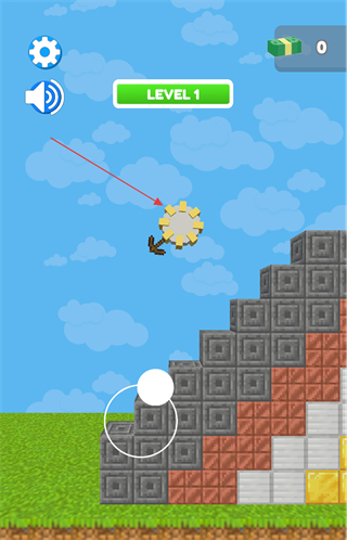 3、玩家控制挖掘機對下面的方塊進行挖掘,挖的越多游戲的鈔票獎勵即獲得越來越多。
