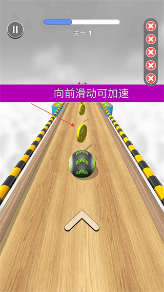 3、向前滑動屏幕,讓球球加速加速狀態下能更快地通過跑道,同時注意避開障礙物,成功抵達終點即可通關。