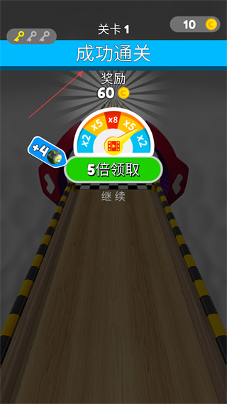 4、成功操控球球到達終點線,會顯示成功通關提示此時可以獲得相應的金幣獎勵,點擊繼續按鈕解鎖并挑戰下一個關卡。